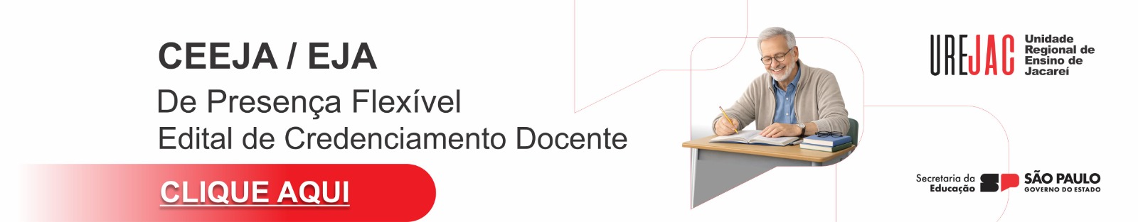 ATENÇÃO: ATRIBUIÇÃO DE AULAS – PROFESSORES CATEGORIA O ATENÇÃO: ATRIBUIÇÃO DE AULAS - PROFESSOR AUXILIAR ATENÇÃO: ATRIBUIÇÃO DE AULAS - PROJETO PROFESSOR TUTOR - DOCENTES DEFERIDOS, CANDIDATOS A CONTRAÇÃO ATENÇÃO: EDITAL 001/2026 DE ABERTURA DE CREDENCIAMENTO DOCENTE PARA O ANO LETIVO DE 2026 NA FUNDAÇÃO CASA ATRIBUIÇÃO DE AULAS 2026 CLIQUE AQUI CONHEÇA UM POUCO MAIS SOBRE A UNIDADE REGIONAL DE ENSINO DA REGIÃO DE JACAREÍ<<>> EDITAL Nº 09/2026 PROCESSO SELETIVO PARA O PREENCHIMENTO DE VAGA DE DIRETOR … Leia mais »EDITAL SALA DE LEITURA – EE ANTÔNIO MARTINS DA SILVA PROF. Leia mais »RESULTADO DO CREDENCIAMENTO PARA A DOCÊNCIA NA SOCIOEDUCAÇÃO FUNDAÇÃO CASA DE JACAREÍ … Leia mais »